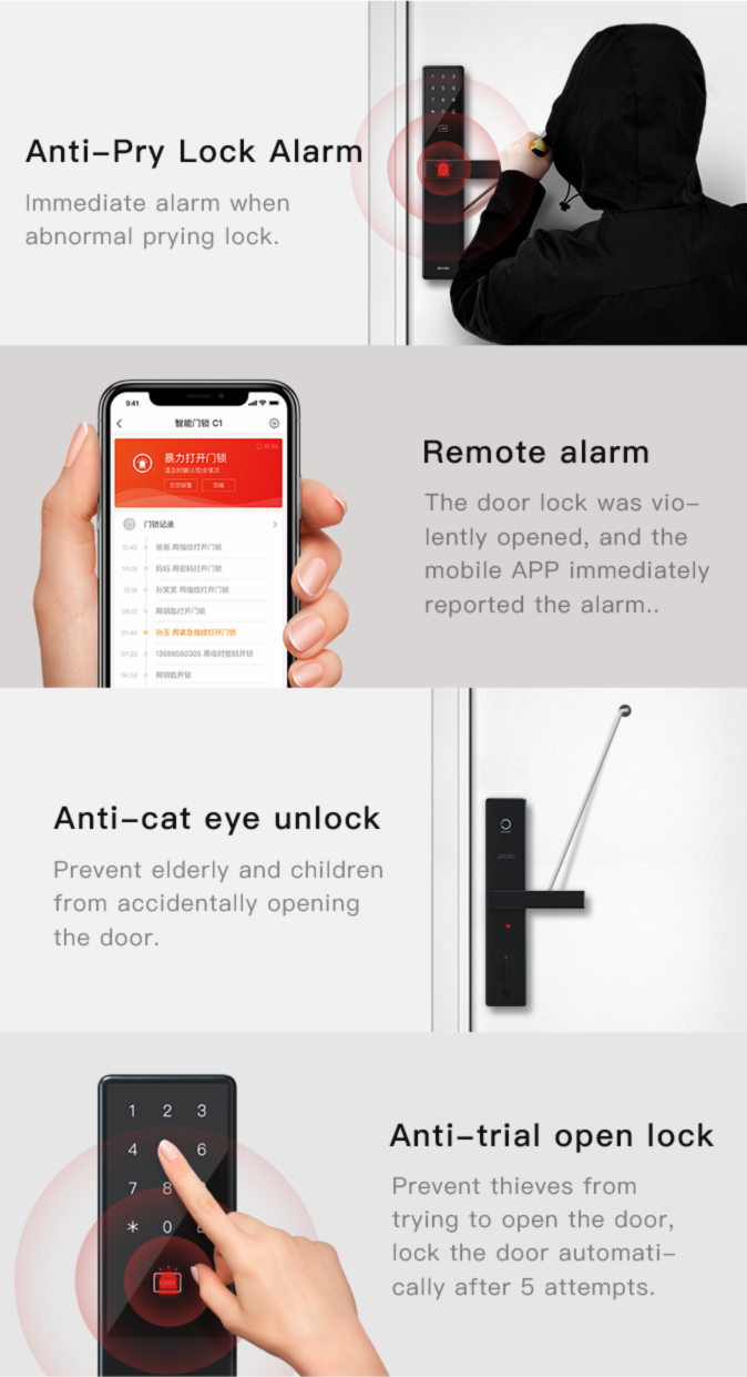 key, APP , NFC Intelligent alarm: anti-theft , crisis unlock , low battery
